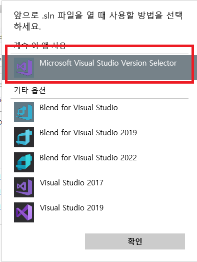Microsoft Visual Studio Version Selector 으로 sln 파일 열기
