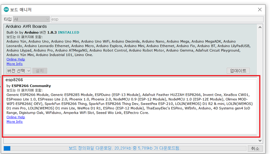 Esp 검색 esp8266 설치 버전 3.0.1