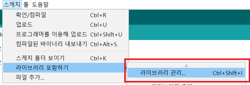 스케치 – 라이브러리 포함하기 – 라이브러리 관리