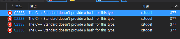 C2338 The C++ Standard doesn't provide a hash for this type.