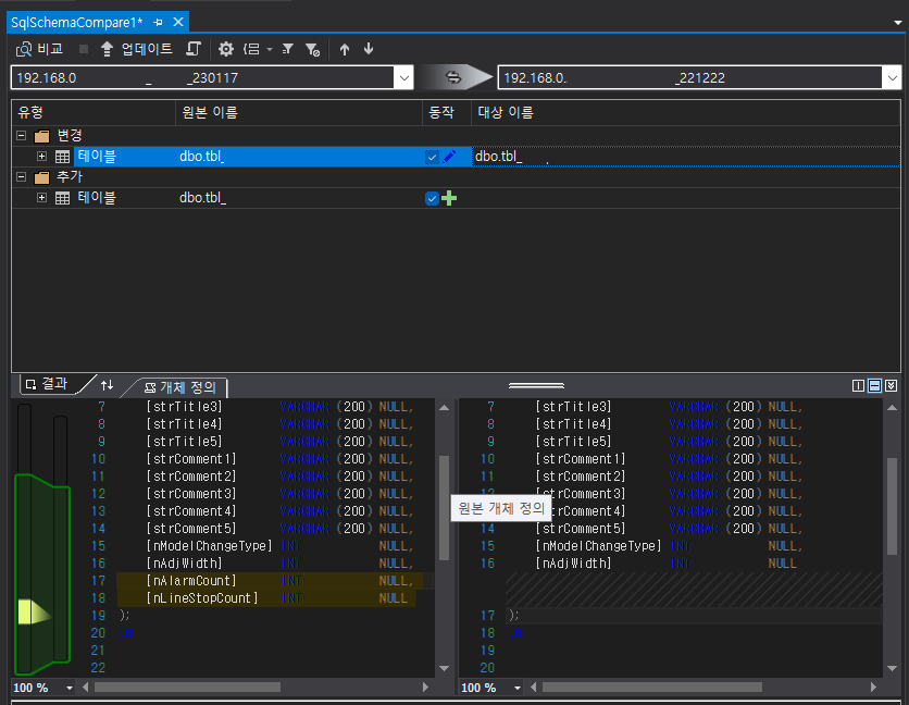 대상 선택 콤보박스 - 원본선택 - 해당 DB 정보입력 및 연결