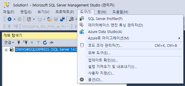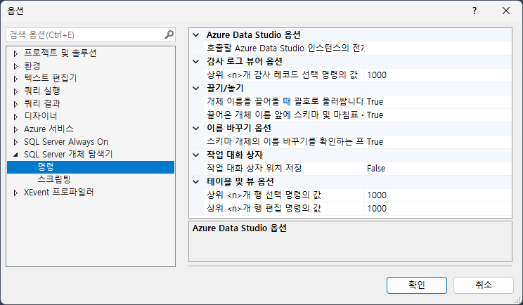 도구 - 옵션 - SQL Server 개체탐색기 - 명령 - 테이블 및 뷰 옵션
