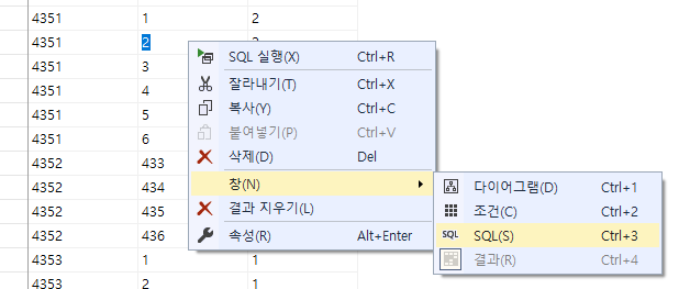 SQL 창에서 order by , where 등 쿼리 작성