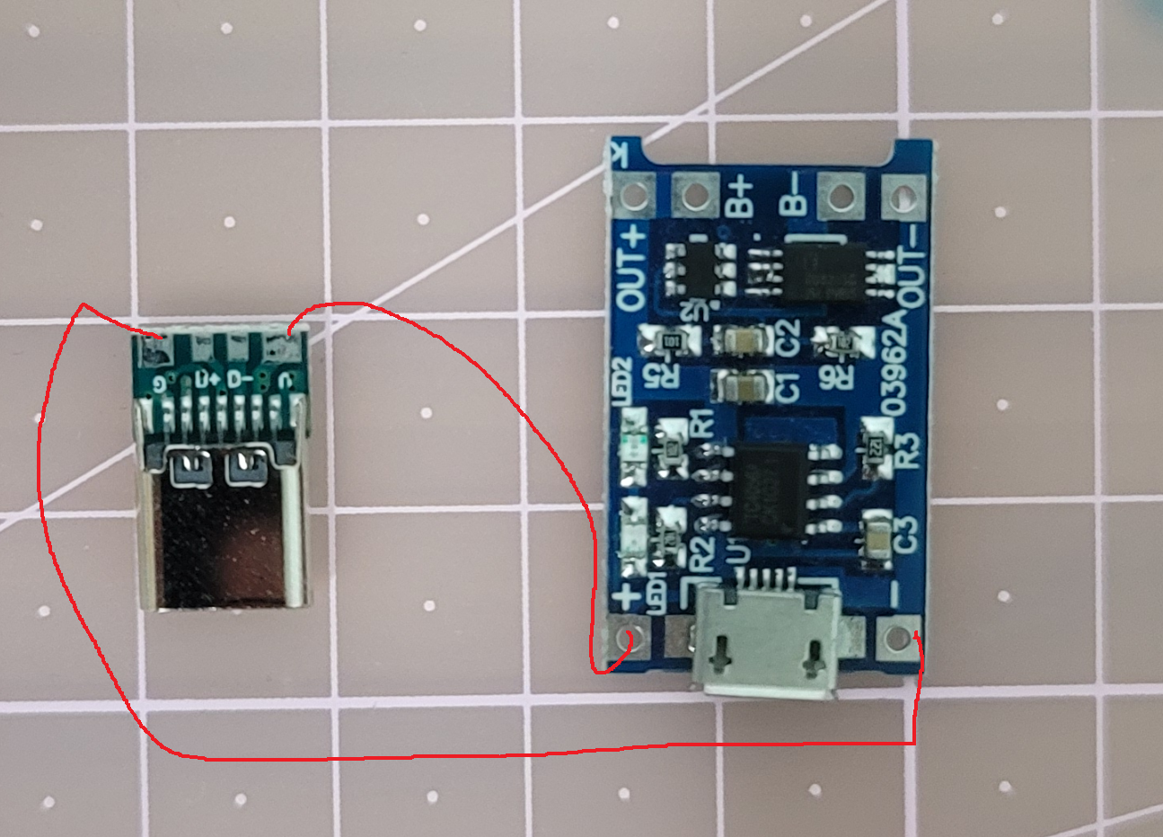 배터리 충전 모듈이랑 C타입 잭 연결