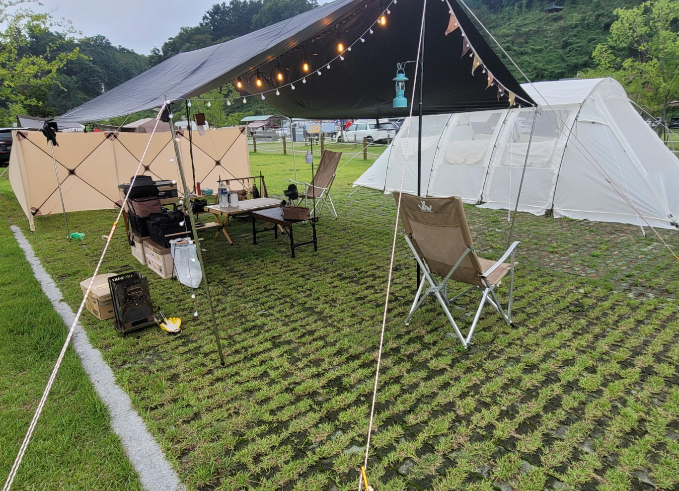 저번에 금수문화야영장 갔을때는 사이트가 좁았던 기억이 있어서