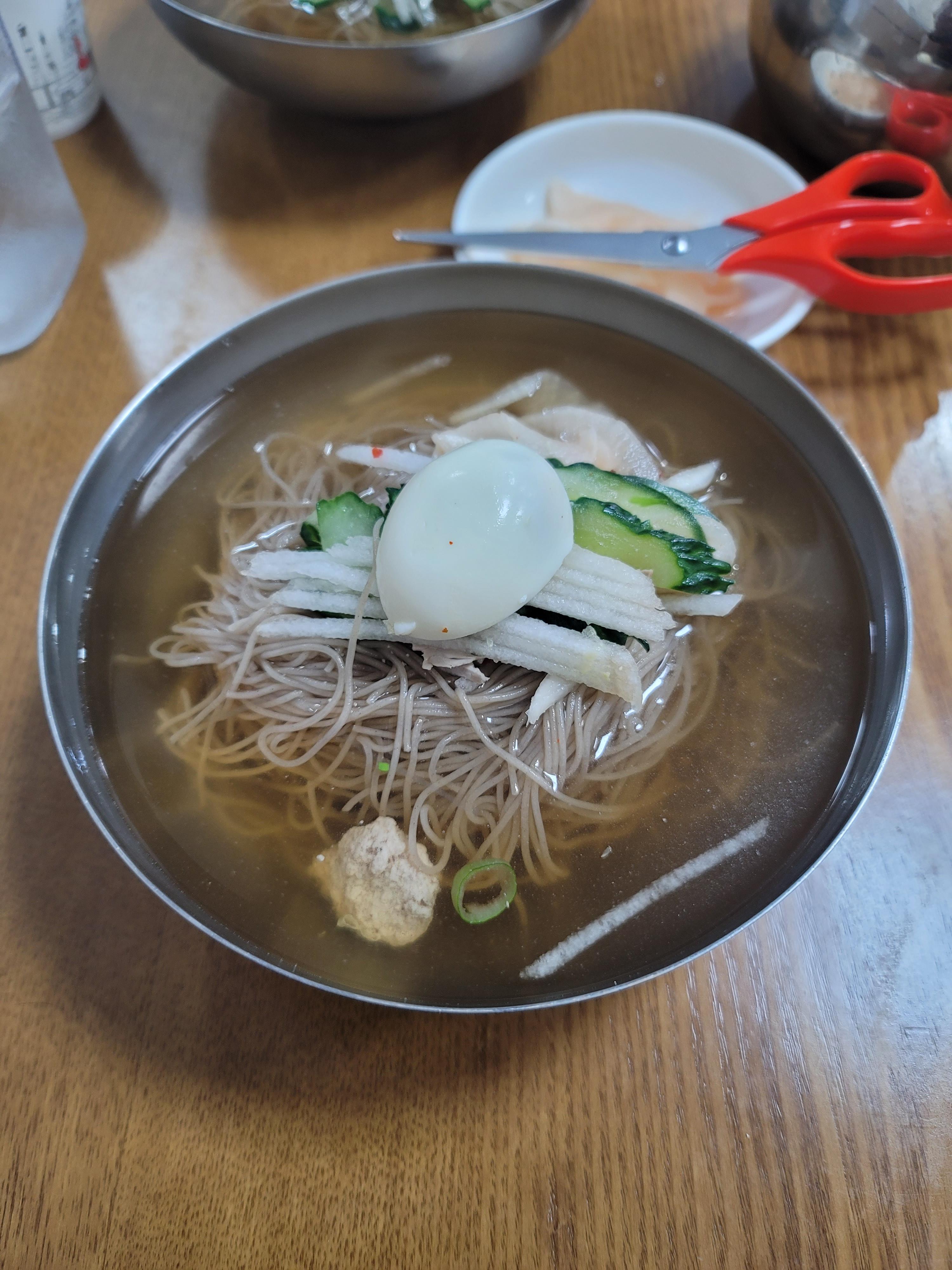 평소에 냉면먹을때 식초나 겨자 아무것도 안넣어 먹어서 그런지 평양냉면의 심심한 맛도 먹을만 했다.