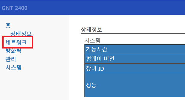 SK 모뎀 변경 후 발생됨 모뎀 모델명 GNT-2400