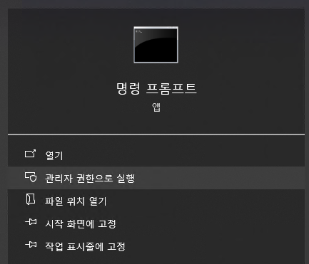 명령 프롬프트 (cmd ) 관리자 권한 실행