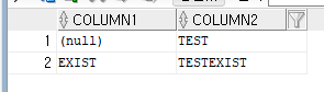 | 테이블명: ZTESTNVL 컬럼명: COLUMN1 , COLUMN2 현재 데이터 ![]() select * from ZTESTNVL; ![]() select NVL(COLUMN1, 'Empty') from ZTESTNVL; ![]() select COLUMN2 from ZTESTNVL WHERE NVL(COLUMN1,'EMPTY') = 'EMPTY'; ![]() select COLUMN2 from ZTESTNVL WHERE NVL(COLUMN1,'EMPTY') = 'EXIST'; ![]() |