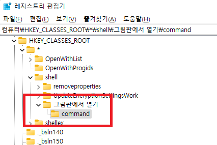 command에서 (기본값) 더블클릭 - 값 데이터에 경로추가
