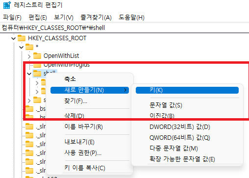 shell 우클릭 - 새로만들기 - 키