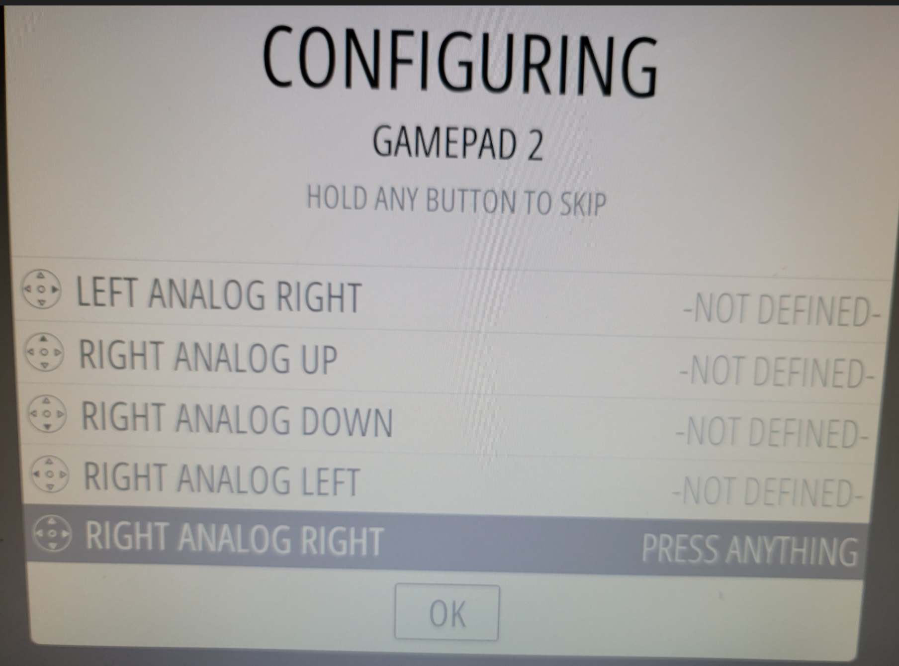 6번항목의 No Gamepads detected 부분이 2 Gamepads detected 로 변경됨