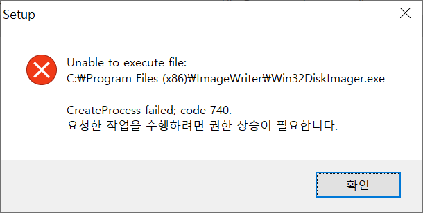 에러창 발생시 관리자 권한으로 실행