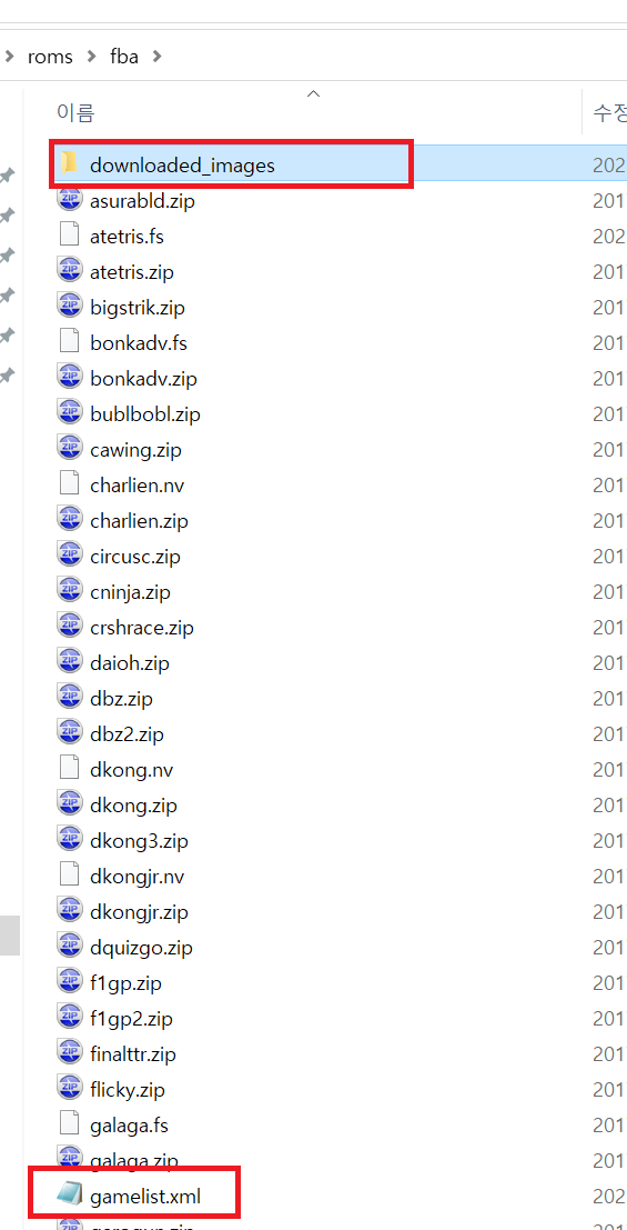 각 에뮬에 이미지와 gamelist.xml 파일 복사