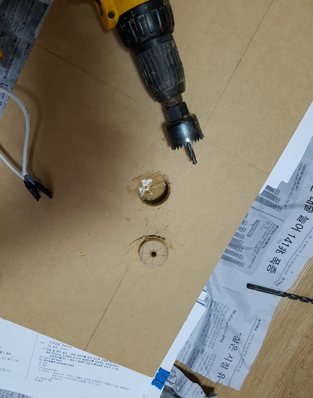 4. 밑판 전선구멍 뚫고 글루건으로 조립하기