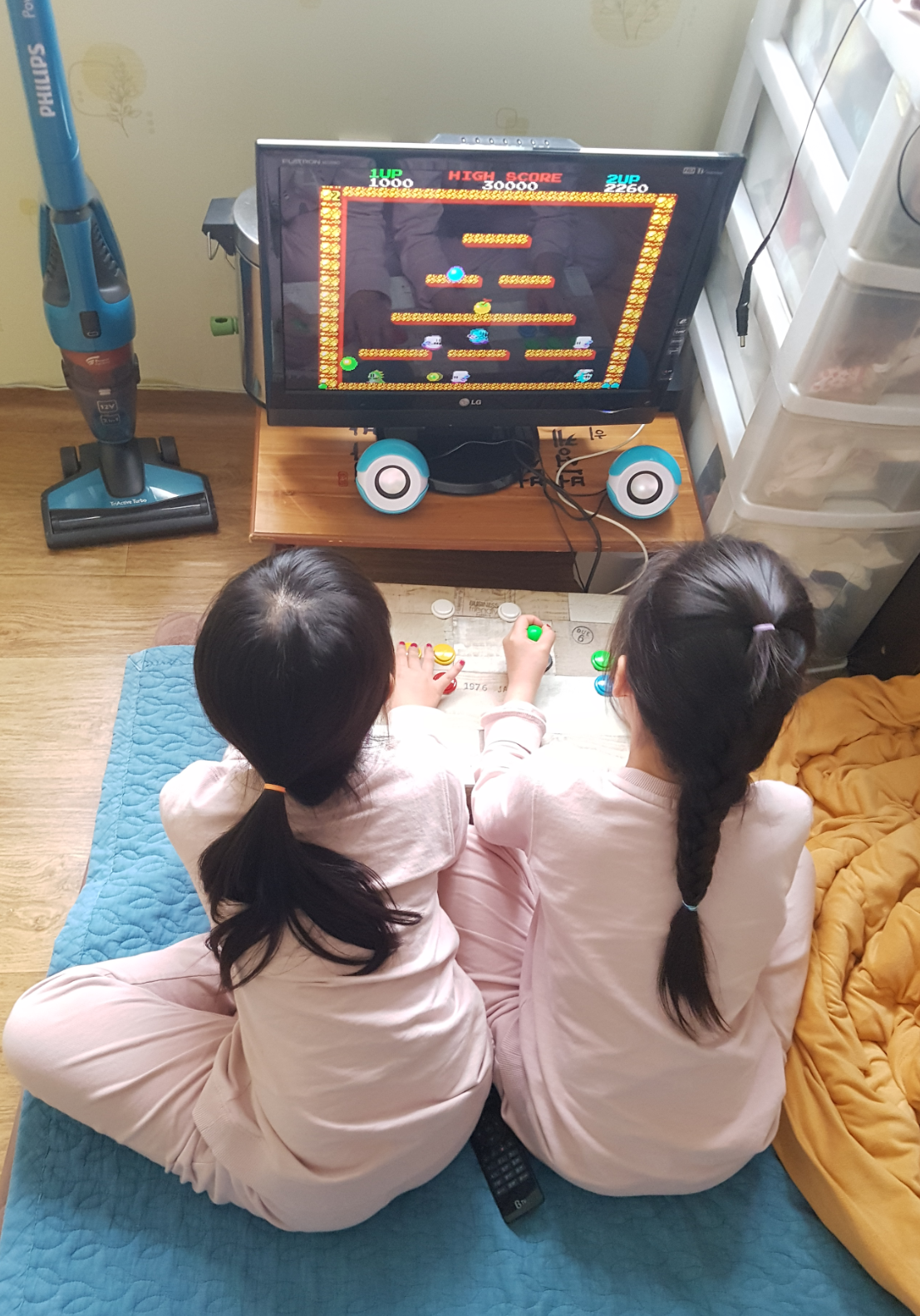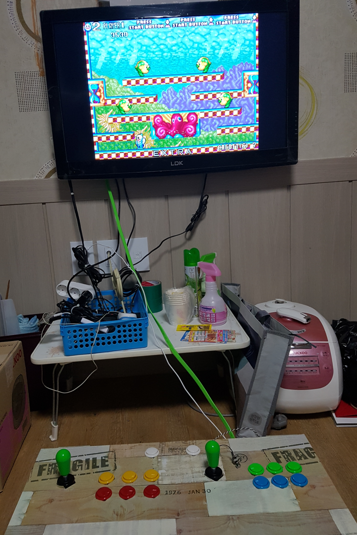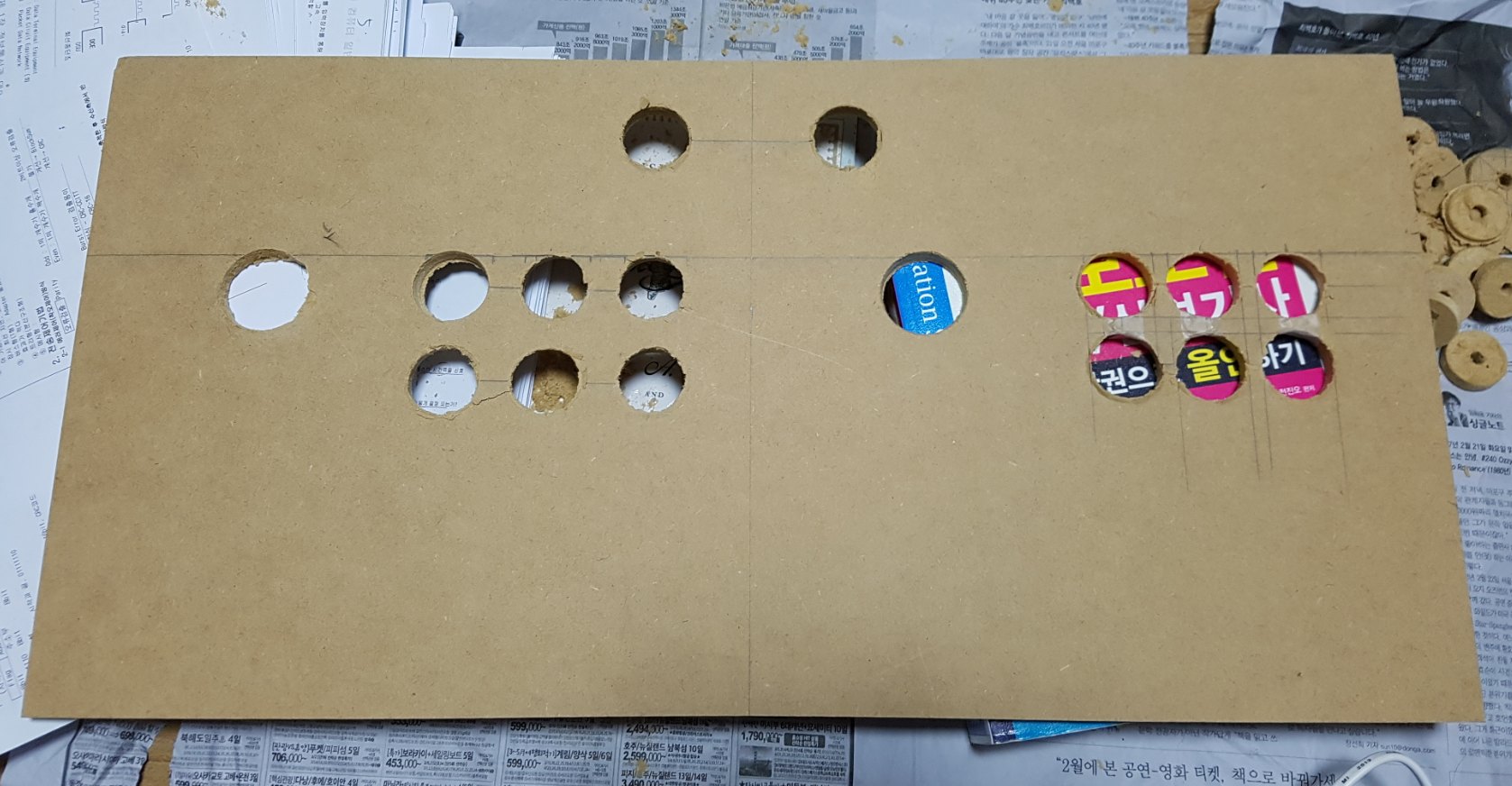 5. 다x소에 파는 벽지 붙이고 버튼 조이스틱 조립