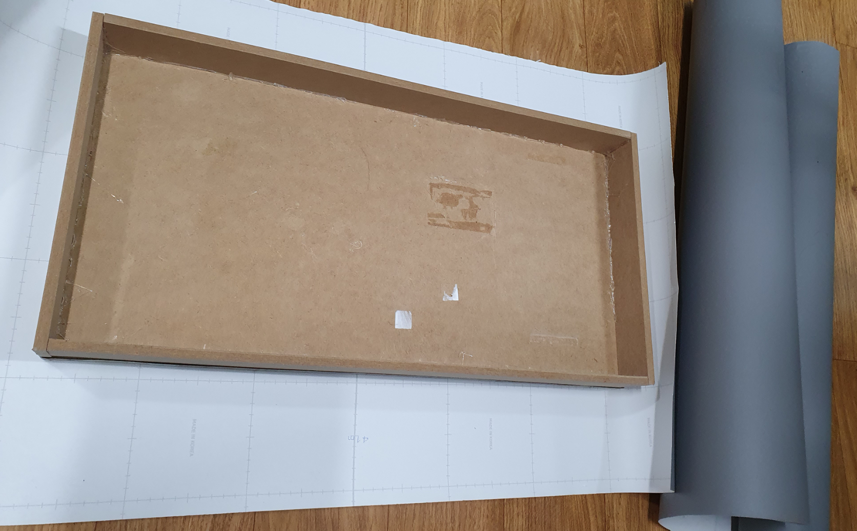 박스 오려서 벽지 붙이고 양면테이프 고정..