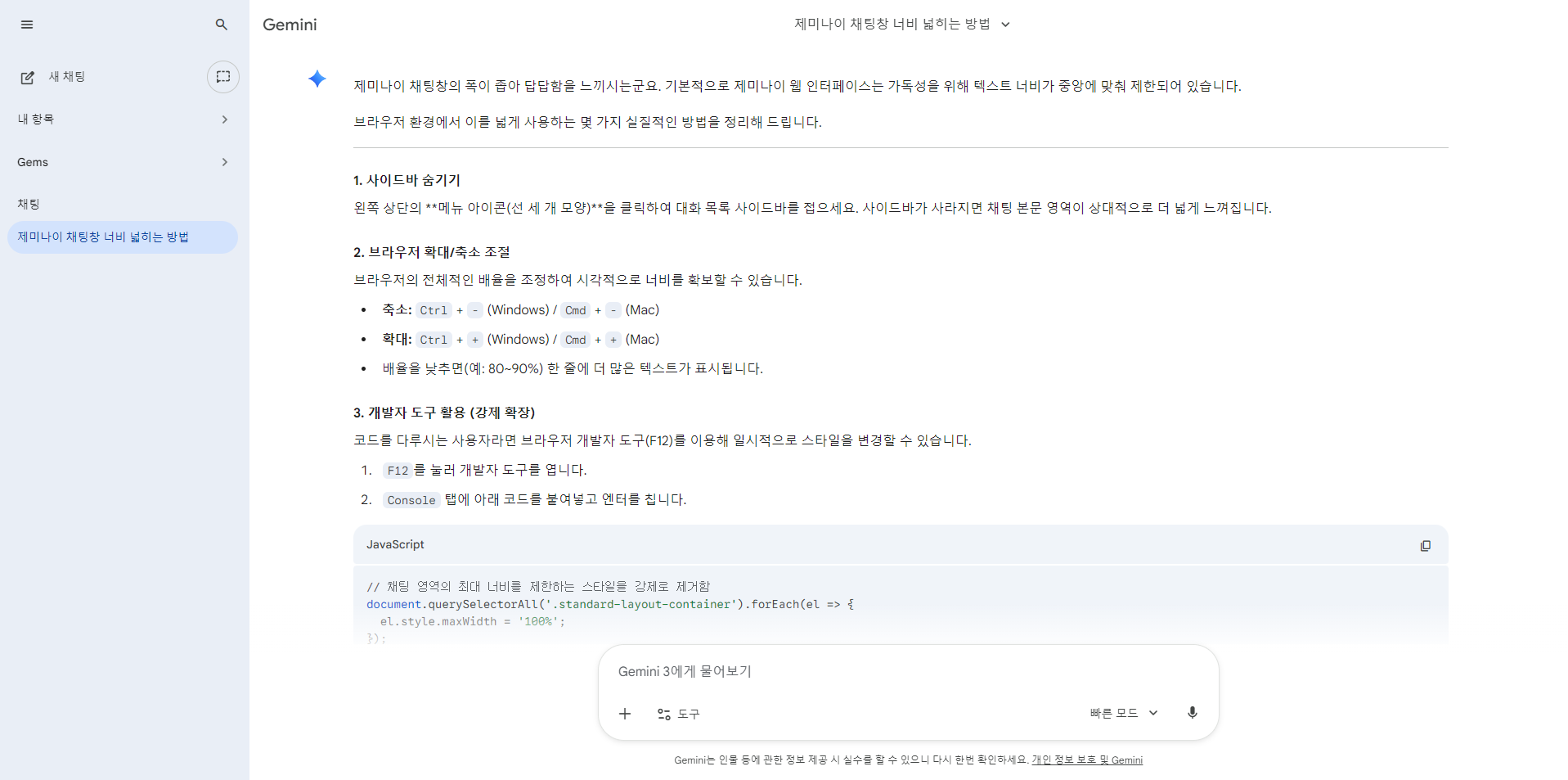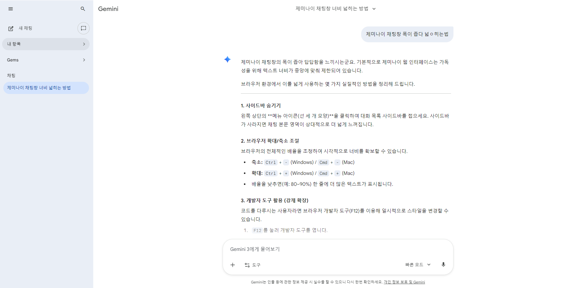 - 방금 만든 '제미나이 넓게' 북마크를 클릭합니다.