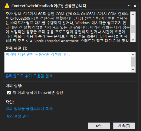 [C#] 60초 이상 실행시 프로그램 중단되는 에러 예외처리 (0) | 2021.05.21 |